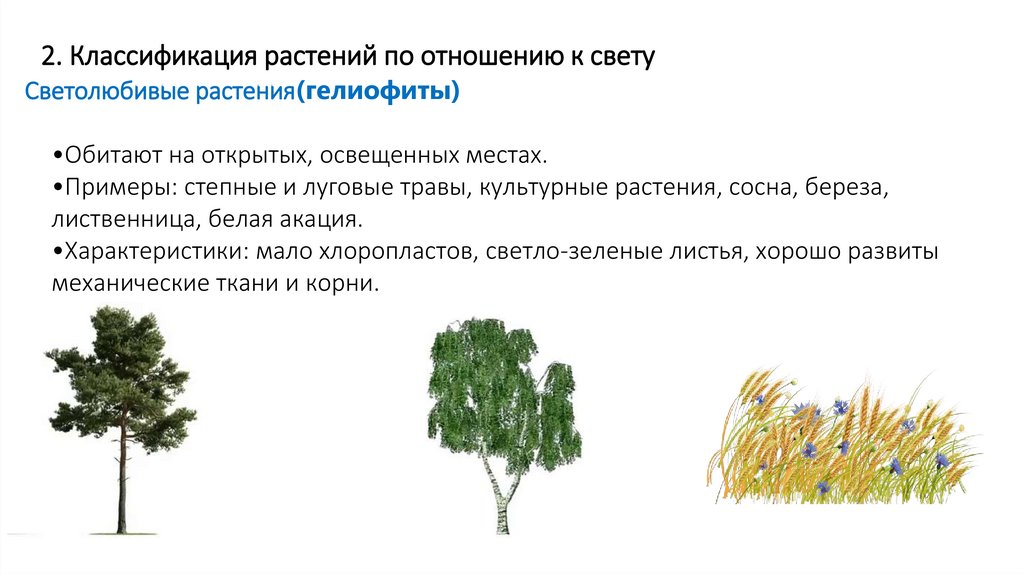 2. Классификация растений по отношению к светуСветолюбивые растения(гелиофиты)