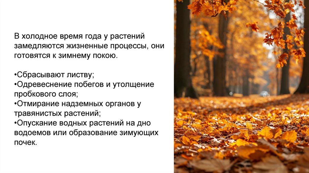 В холодное время года у растенийзамедляются жизненные процессы, они