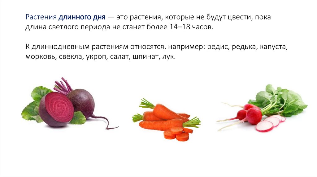 К длиннодневным растениям относятся, например: редис, редька, капуста,