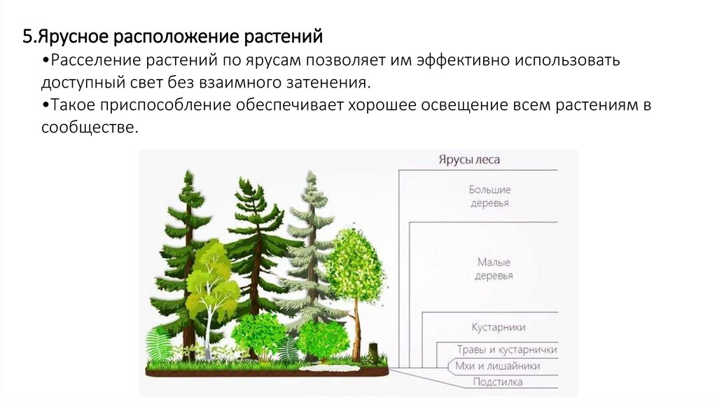 5.Ярусное расположение растений•Расселение растений по ярусам позволяет им эффективно использовать