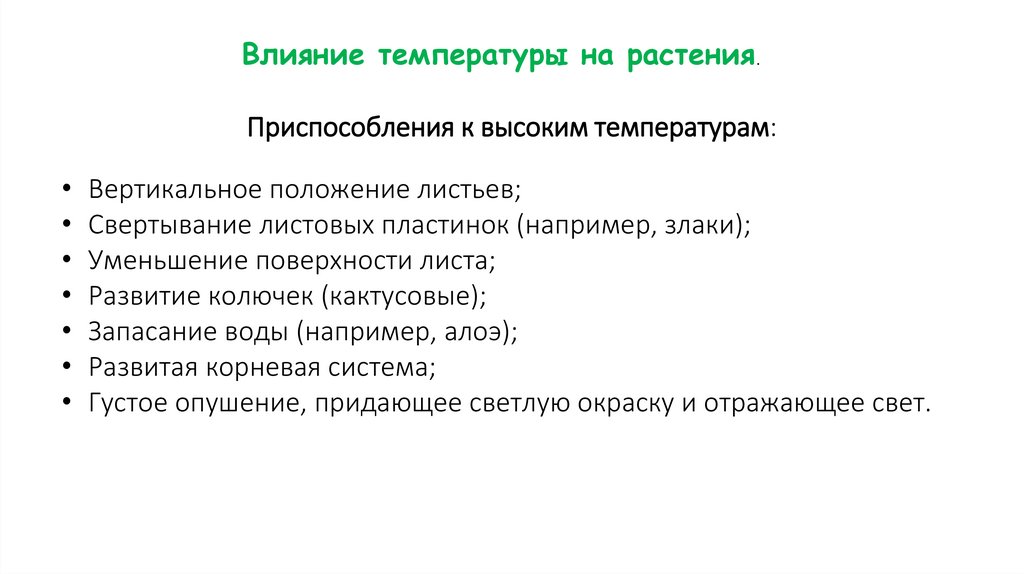 Влияние температуры на растения.Приспособления к высоким температурам: