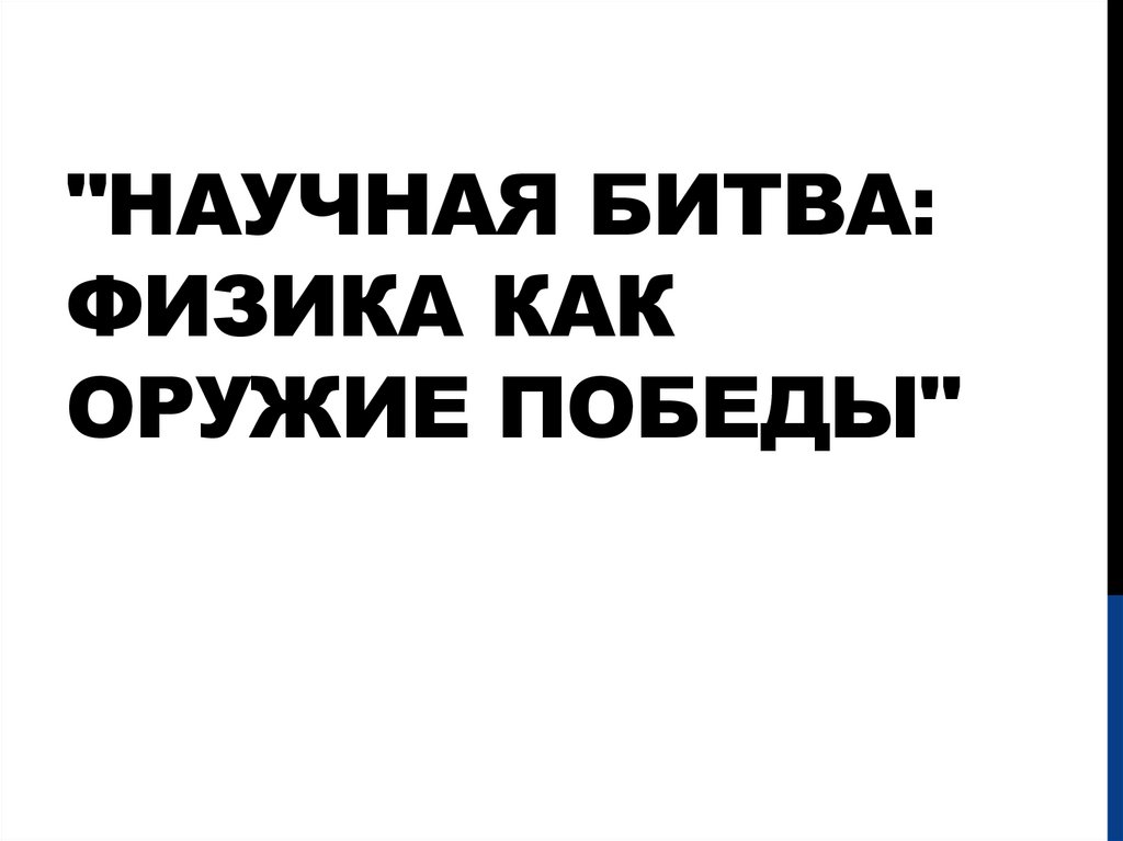 "НАУЧНАЯ БИТВА:ФИЗИКА КАК