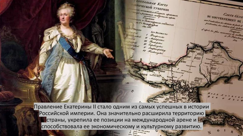 Правление Екатерины II стало одним из самых успешных в историиРоссийской империи. Она значительно расширила территорию