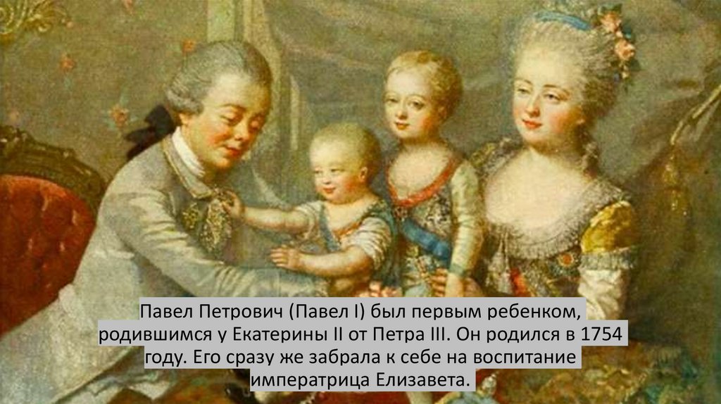 Павел Петрович (Павел I) был первым ребенком,родившимся у Екатерины II от Петра III. Он родился в 1754