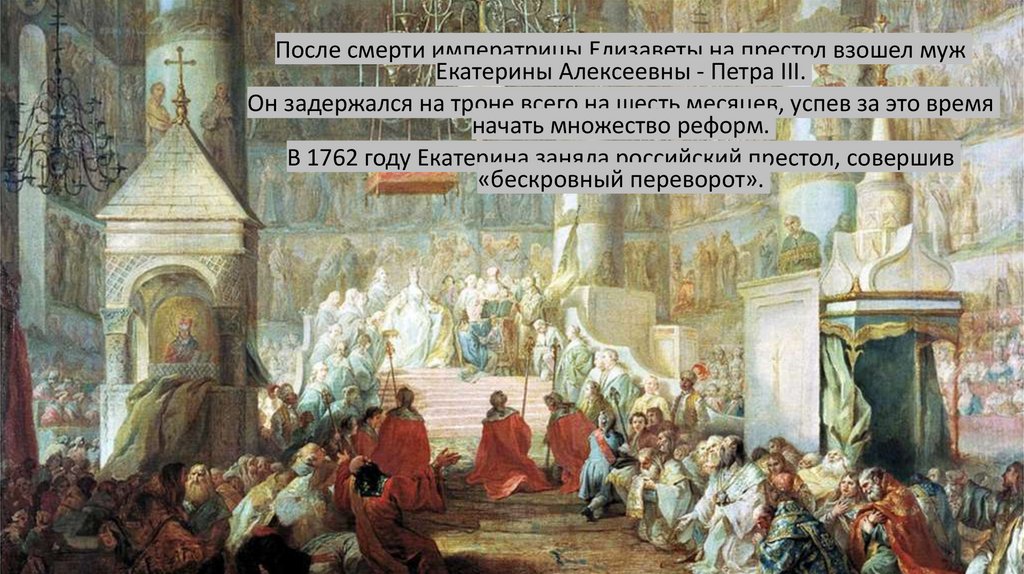 После смерти императрицы Елизаветы на престол взошел мужЕкатерины Алексеевны - Петра III.