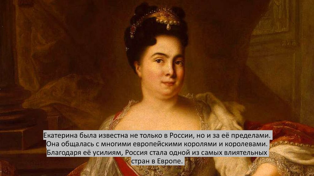 Екатерина была известна не только в России, но и за её пределами.Она общалась с многими европейскими королями и королевами.