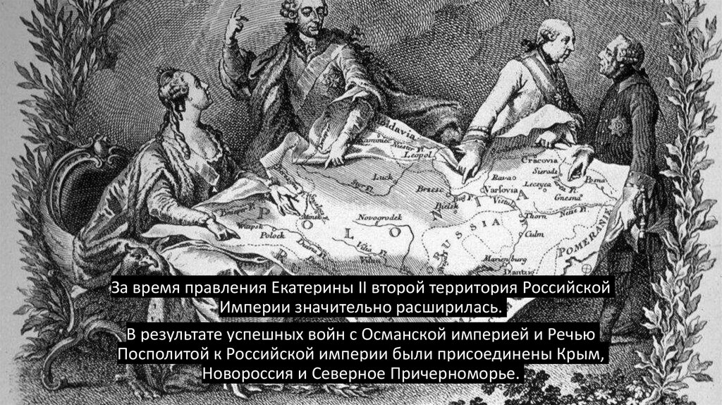 За время правления Екатерины II второй территория РоссийскойИмперии значительно расширилась.