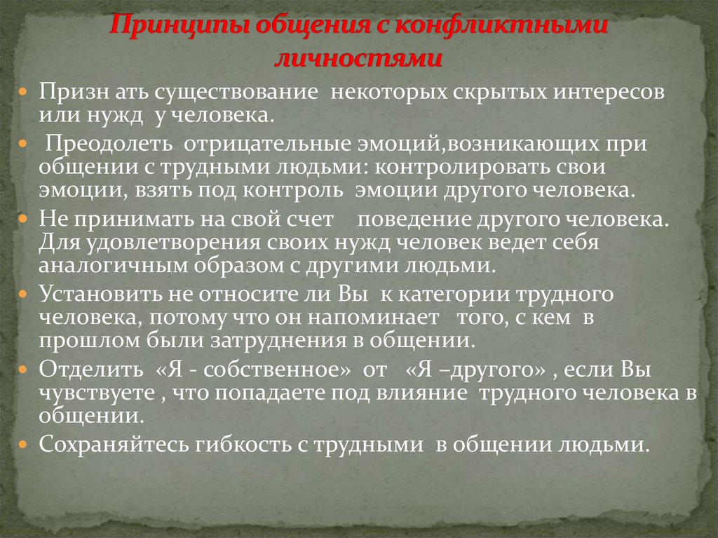 25. Принципы общения с конфликтными личностями