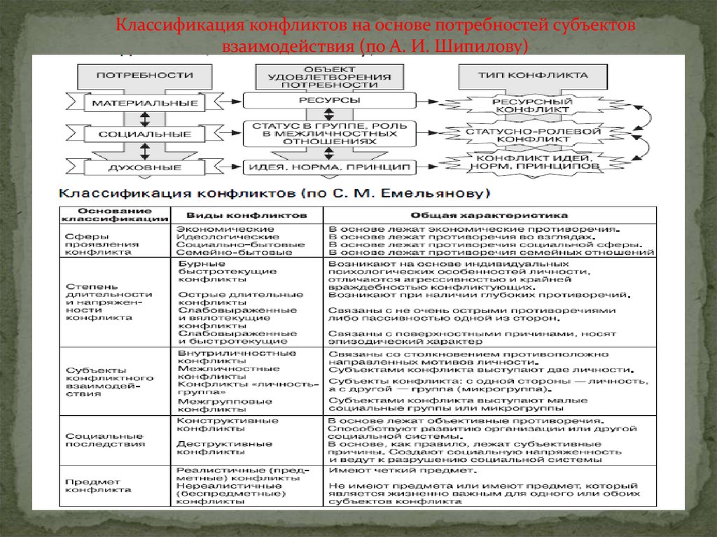 Классификация конфликтов на основе потребностей субъектоввзаимодействия (по А. И. Шипилову)