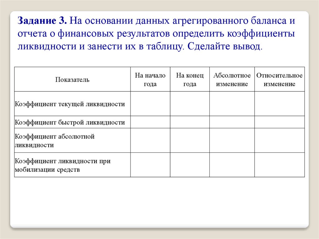 ликвидности и занести их в таблицу. Сделайте вывод.