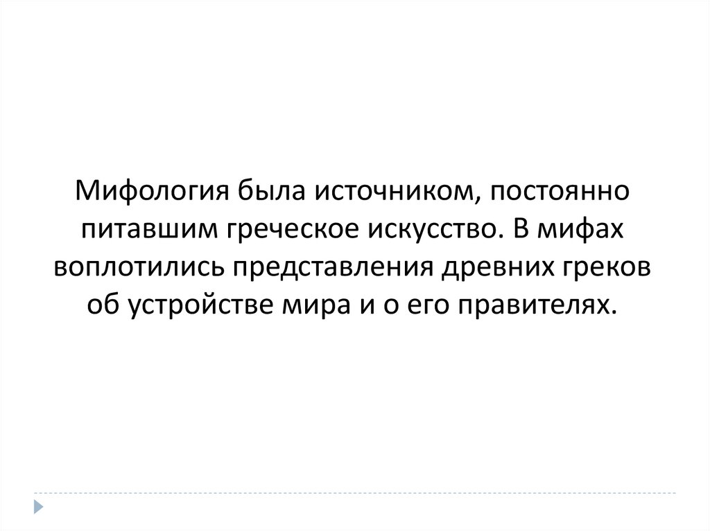 Мифология была источником, постояннопитавшим греческое искусство. В мифах