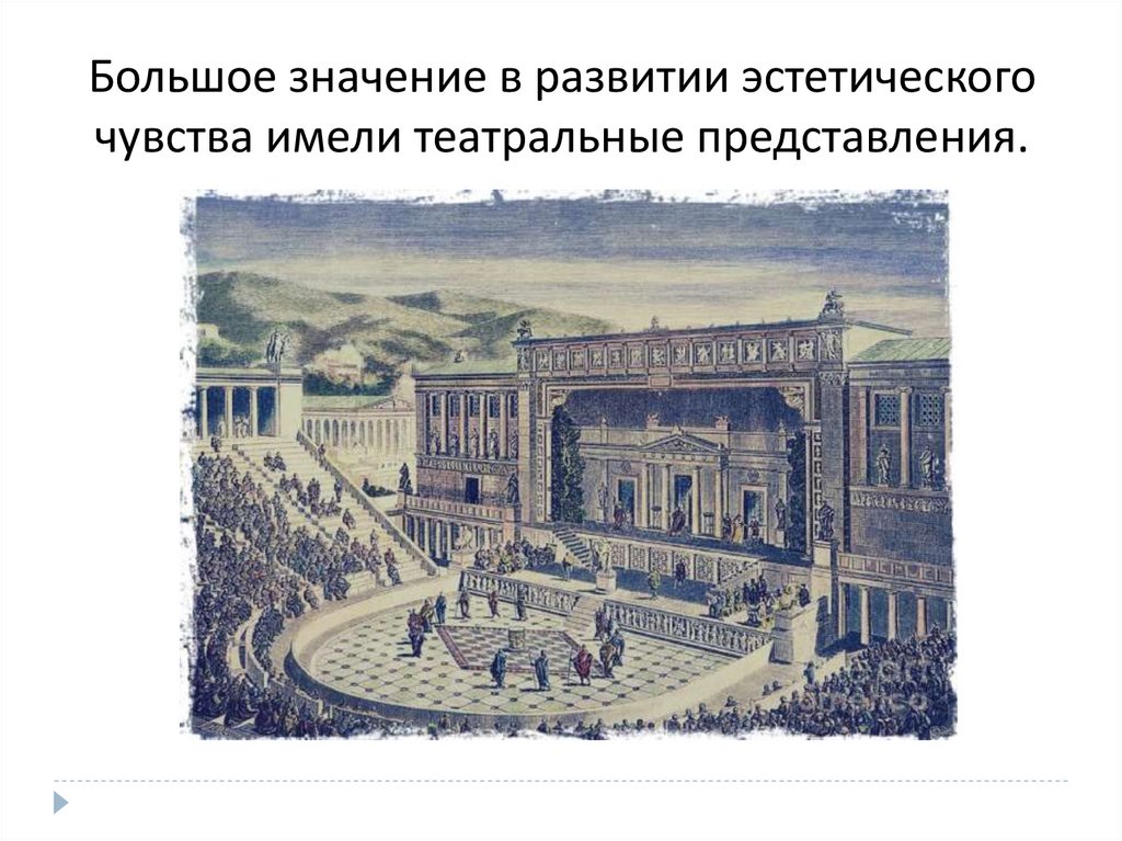 Большое значение в развитии эстетическогочувства имели театральные представления.