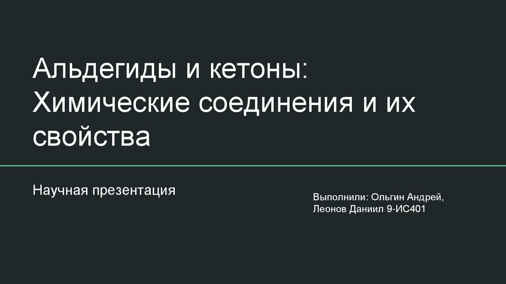 ЦельИзучить и представить характеристики альдегидов и кетонов с акцентом на их структуру, свойства,