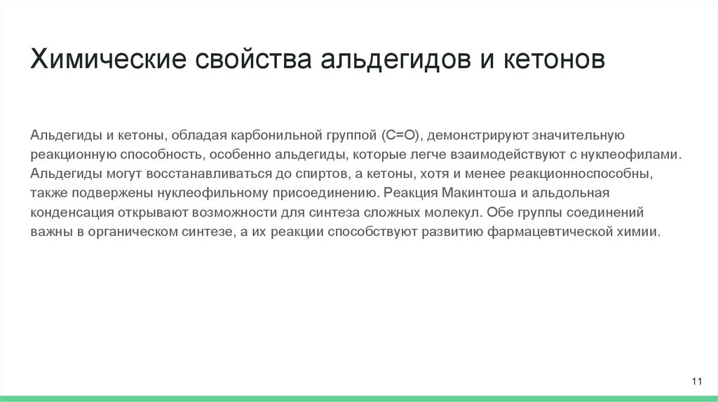Химические свойства альдегидов и кетоновАльдегиды и кетоны, обладая карбонильной группой (C=O), демонстрируют значительную