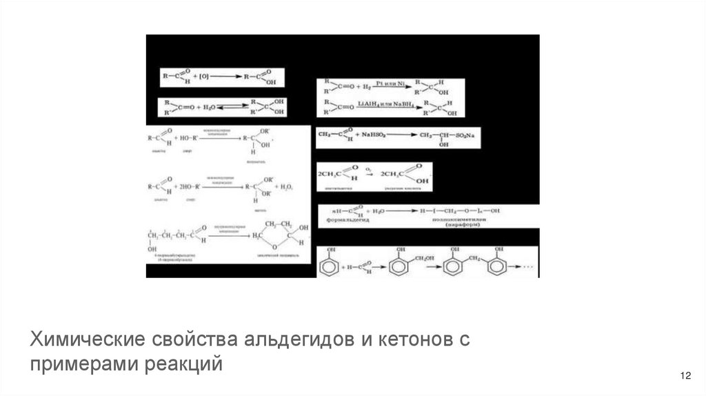 Химические свойства альдегидов и кетонов спримерами реакций