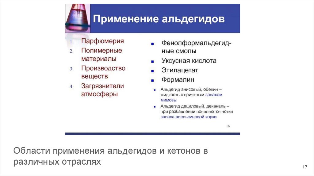 Области применения альдегидов и кетонов вразличных отраслях