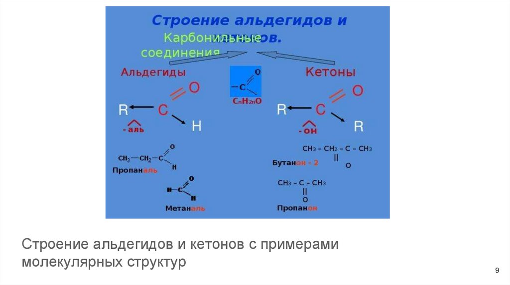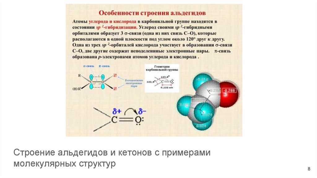 Строение альдегидов и кетонов с примерамимолекулярных структур