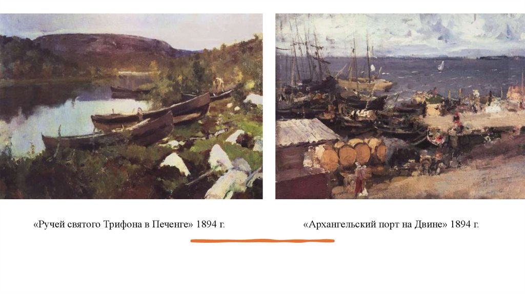 «Ручей святого Трифона в Печенге» 1894 г.«Архангельский порт на Двине» 1894 г.