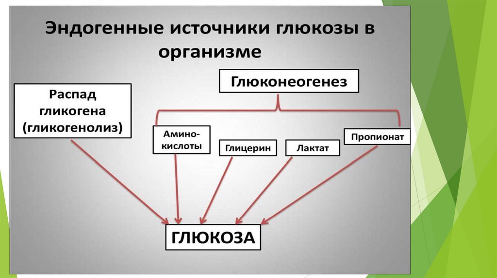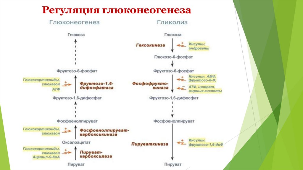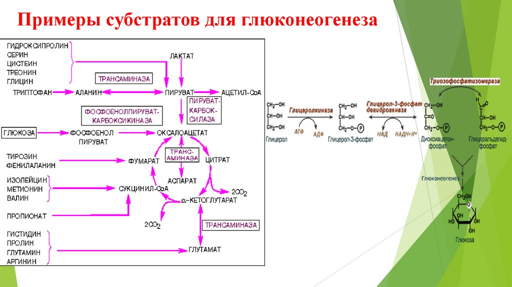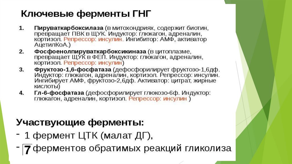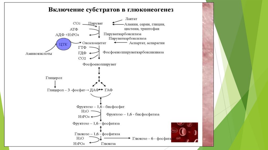 Предшественники глюкозы: пируват, лактат, глюкогенные аминокислоты,