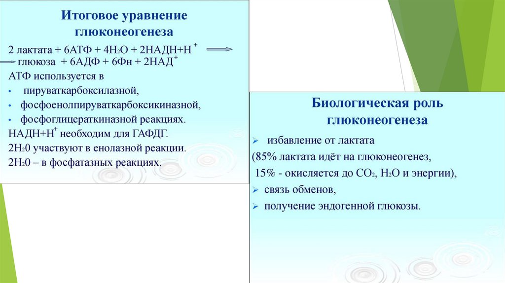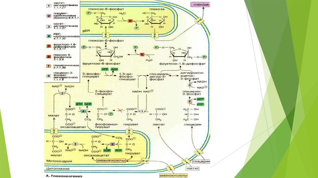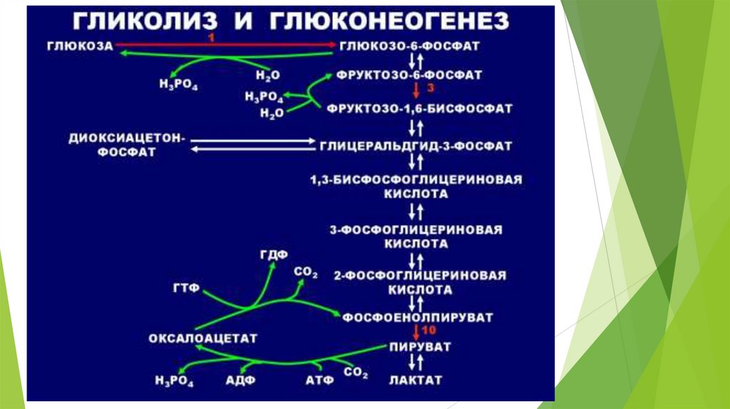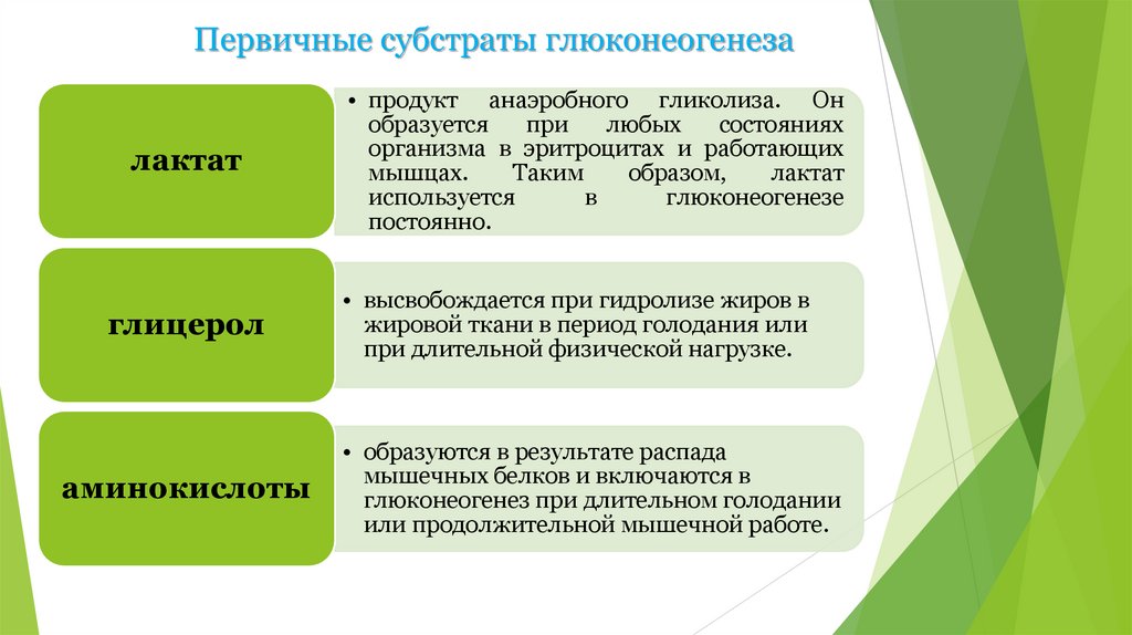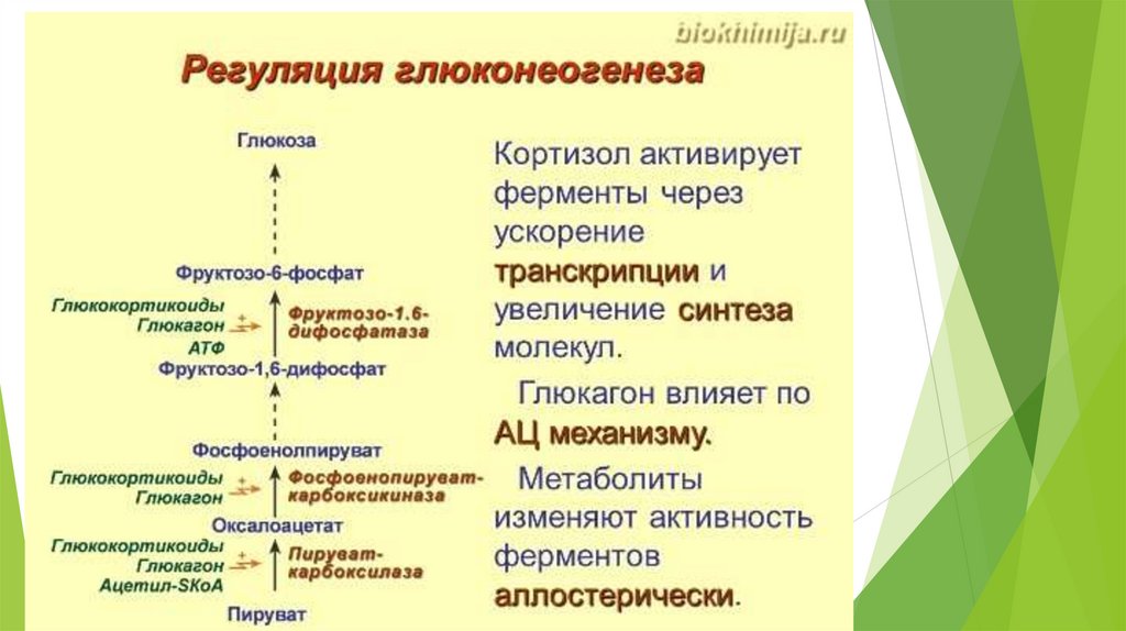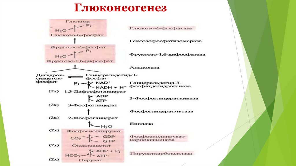 Предшественники глюкозы: пируват, лактат, глюкогенные аминокислоты,