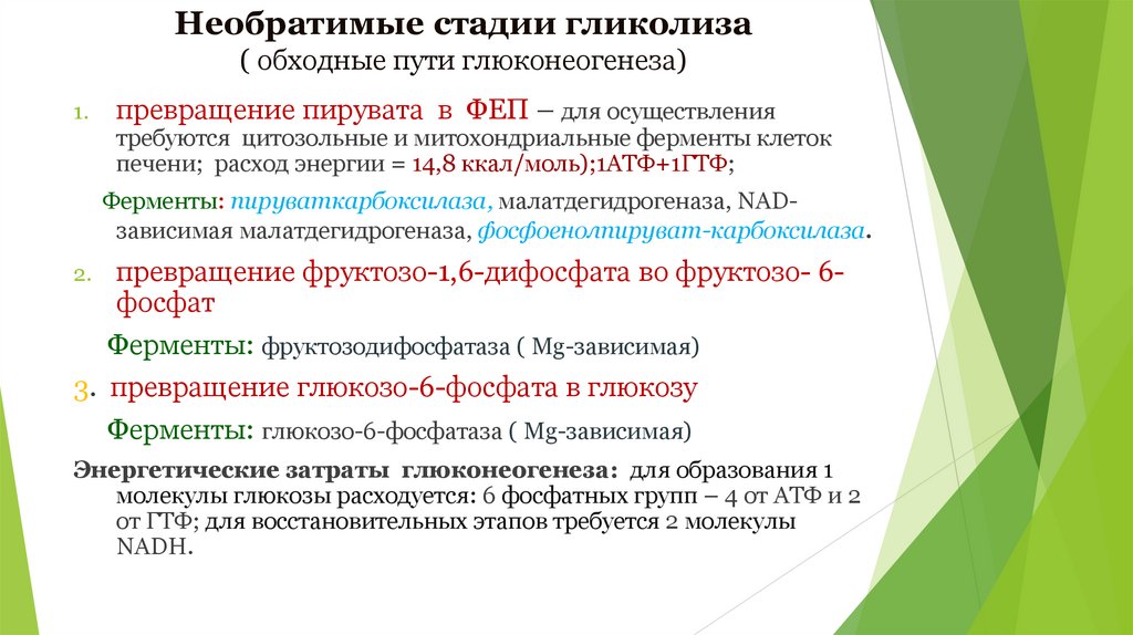 Необратимые стадии гликолиза( обходные пути глюконеогенеза)