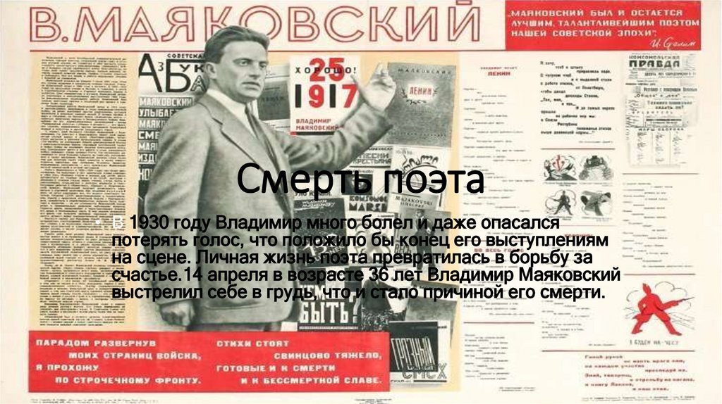 Смерть поэта• В 1930 году Владимир много болел и даже опасался