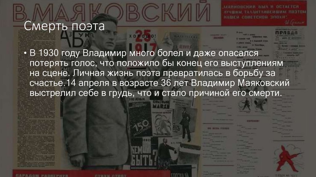 Смерть поэта• В 1930 году Владимир много болел и даже опасался