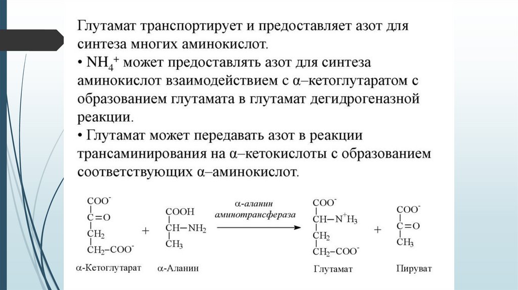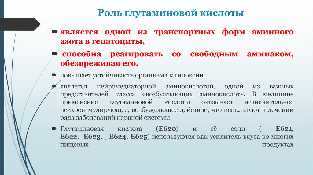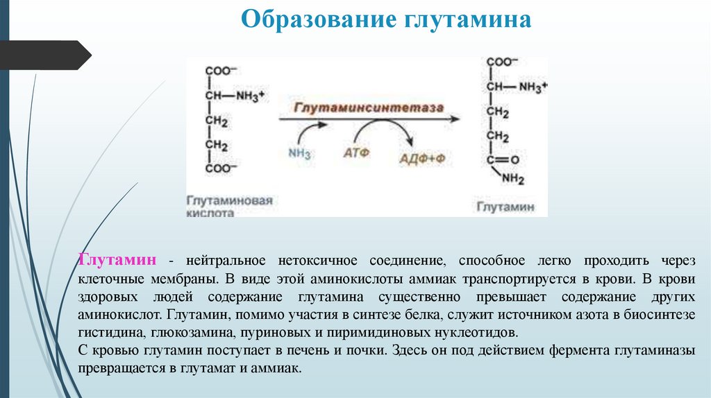 Роль глутаминовой кислотыявляется одной из транспортных форм аминного
