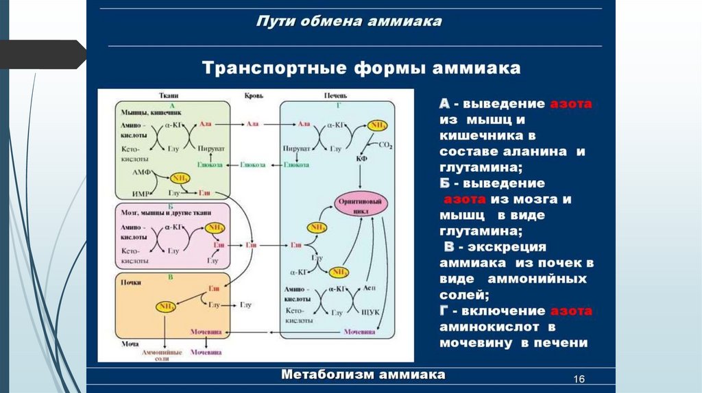 Метаболизм азота, образующегося при катаболизме белков.2.