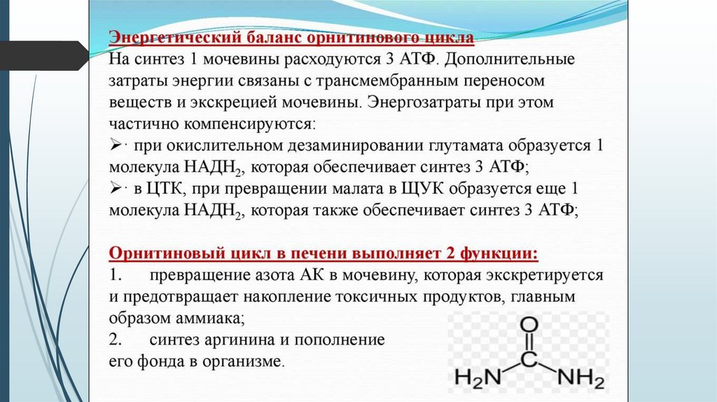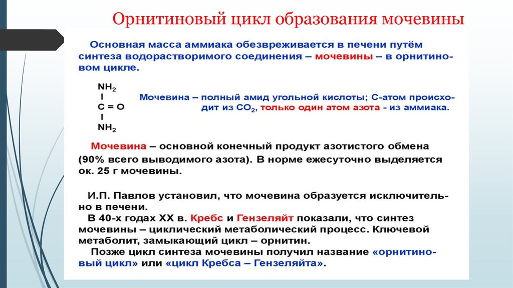 1. Метаболизм азота, образующегося при катаболизме белков.