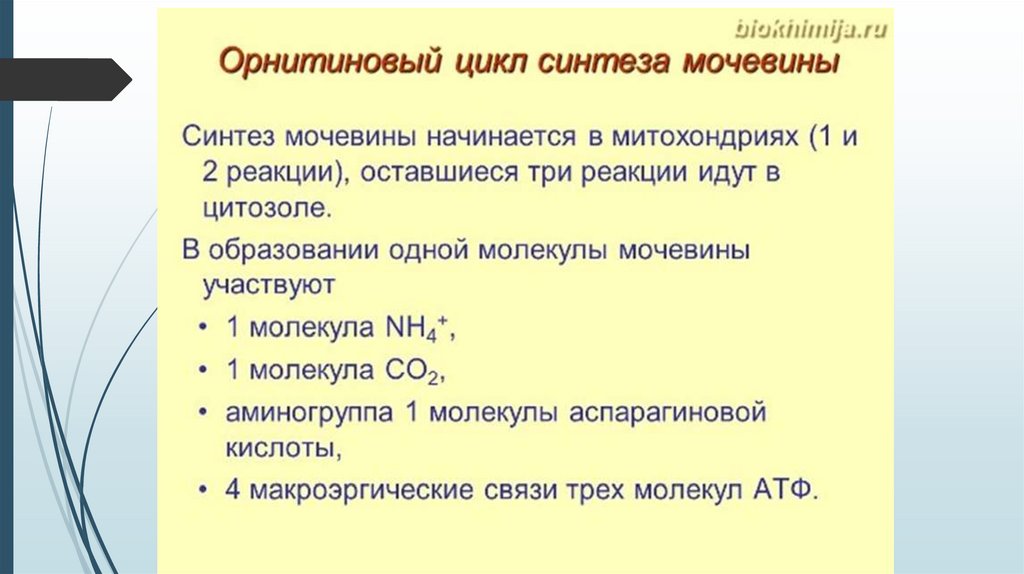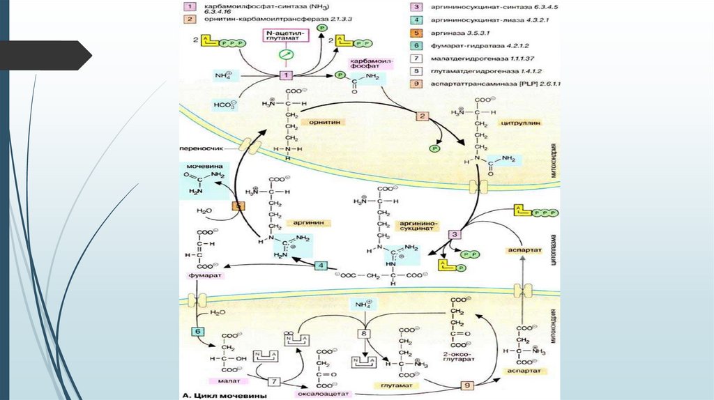 пусковые реакции цикла мочевины, как и реакции ЦТК, протекают в
