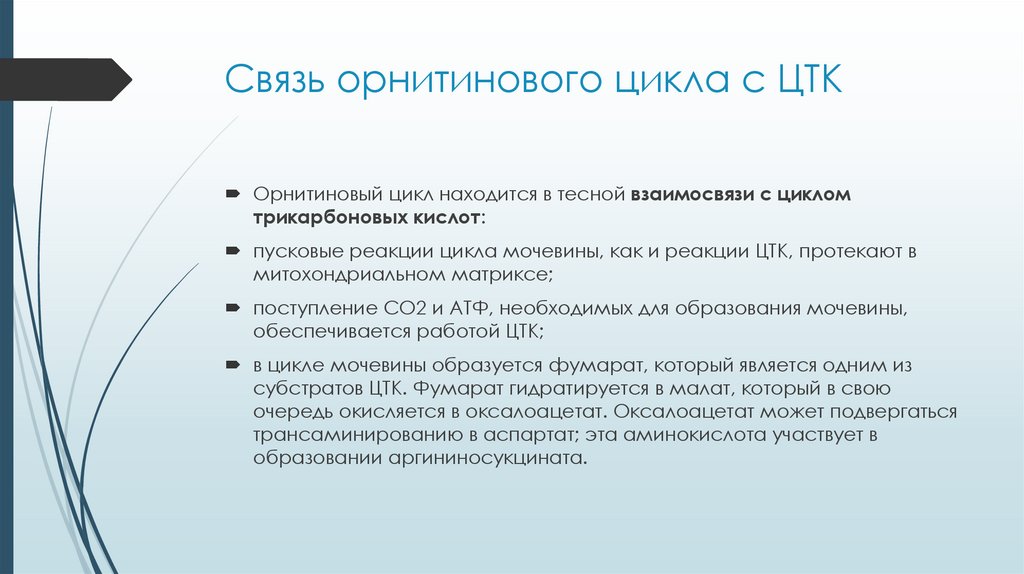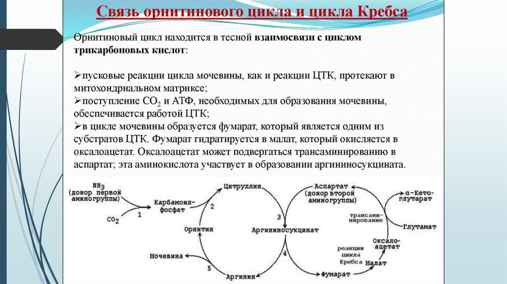 Связь орнитинового цикла с ЦТКОрнитиновый цикл находится в тесной взаимосвязи с циклом