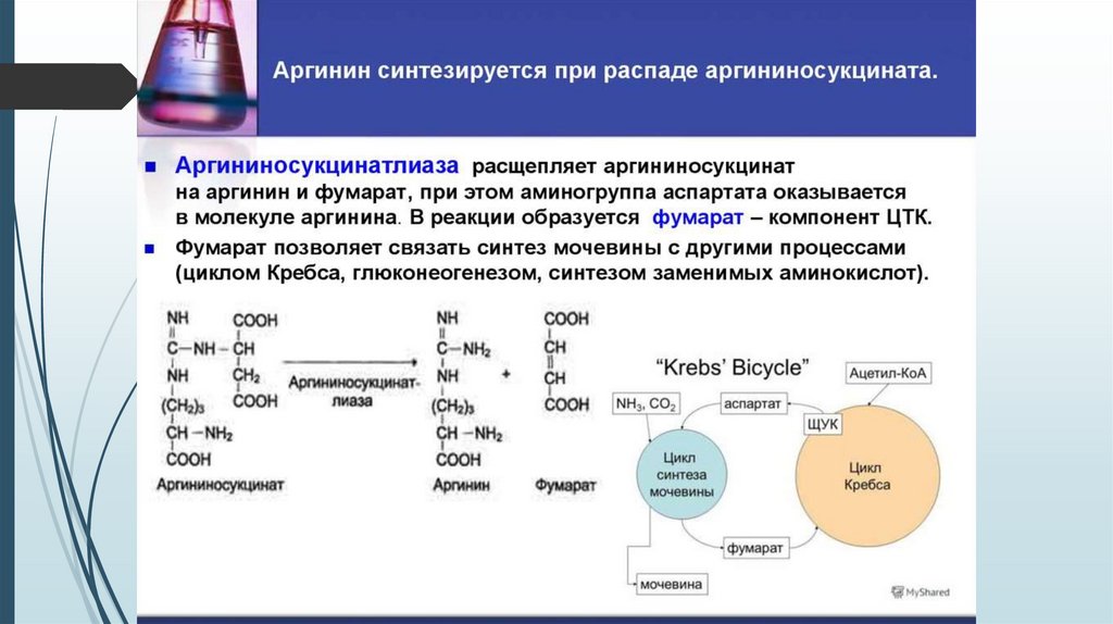 предшественников (ацетил-КоА и глутамата), а также аргинина, который