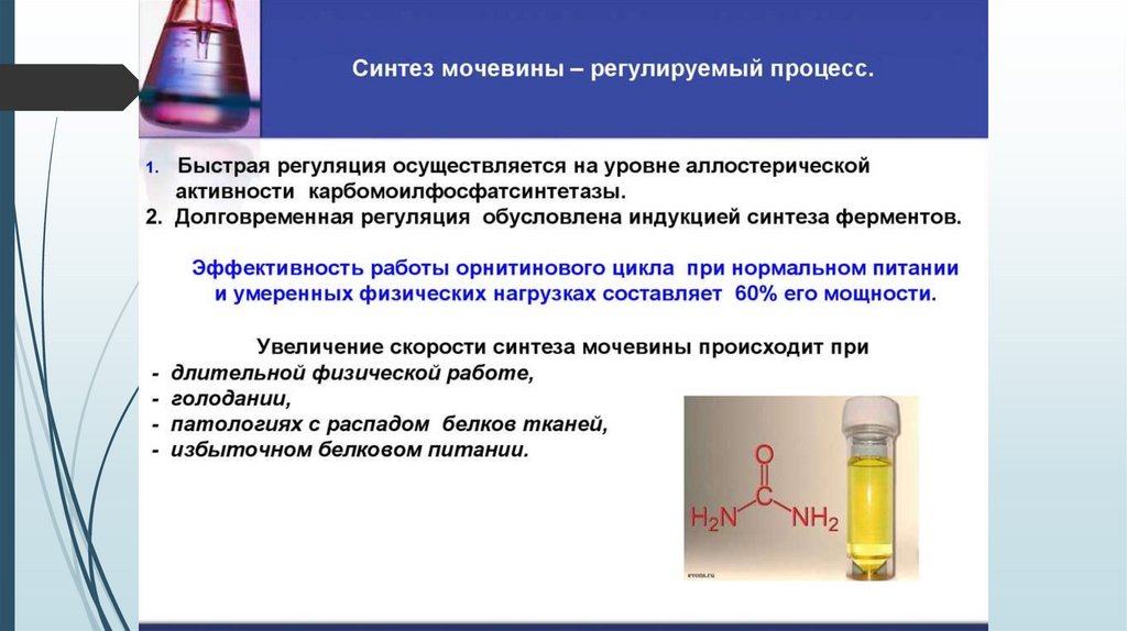 Регуляция цикла мочевины1. осуществляется главным образом на уровне карбамоилфосфатсинтетазы,