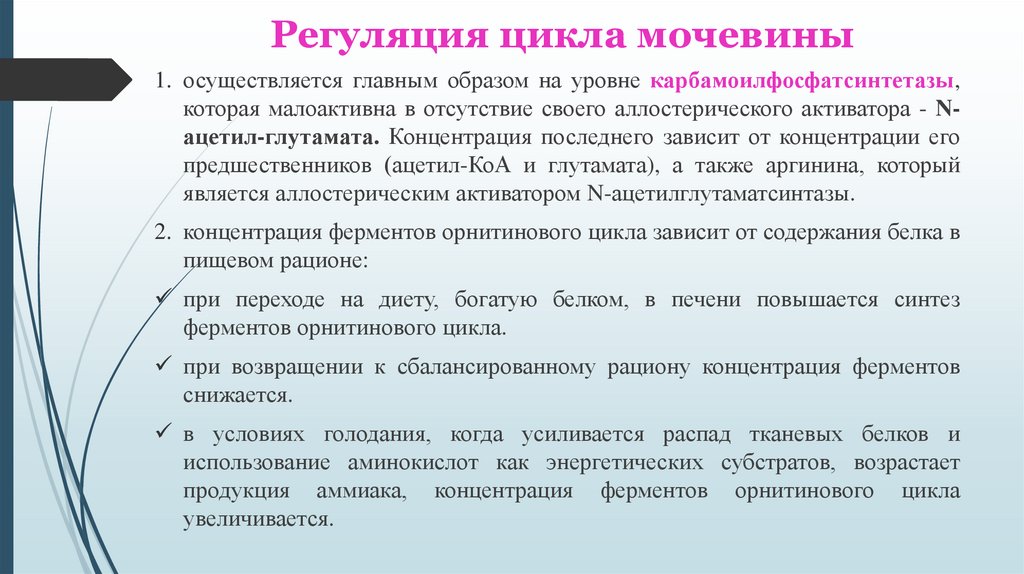 которая малоактивна в отсутствие своего аллостерического активатора - Nацетил-глутамата. Концентрация последнего зависит от концентрации его