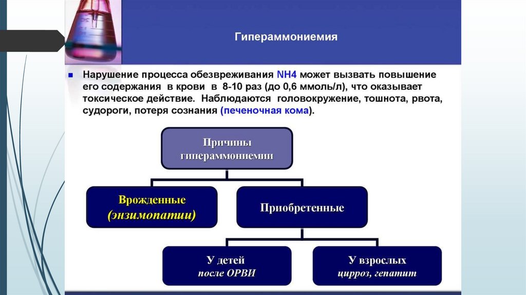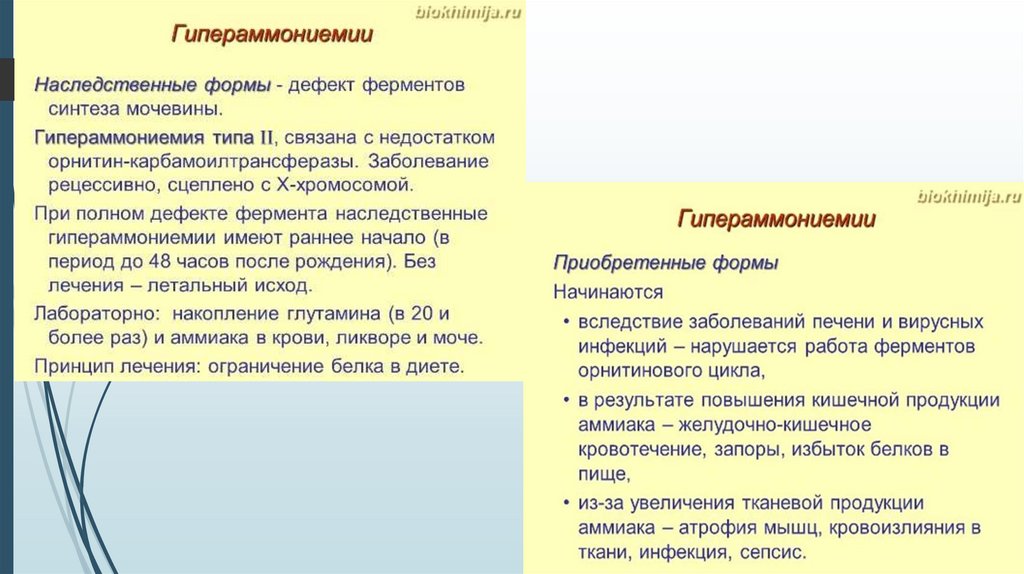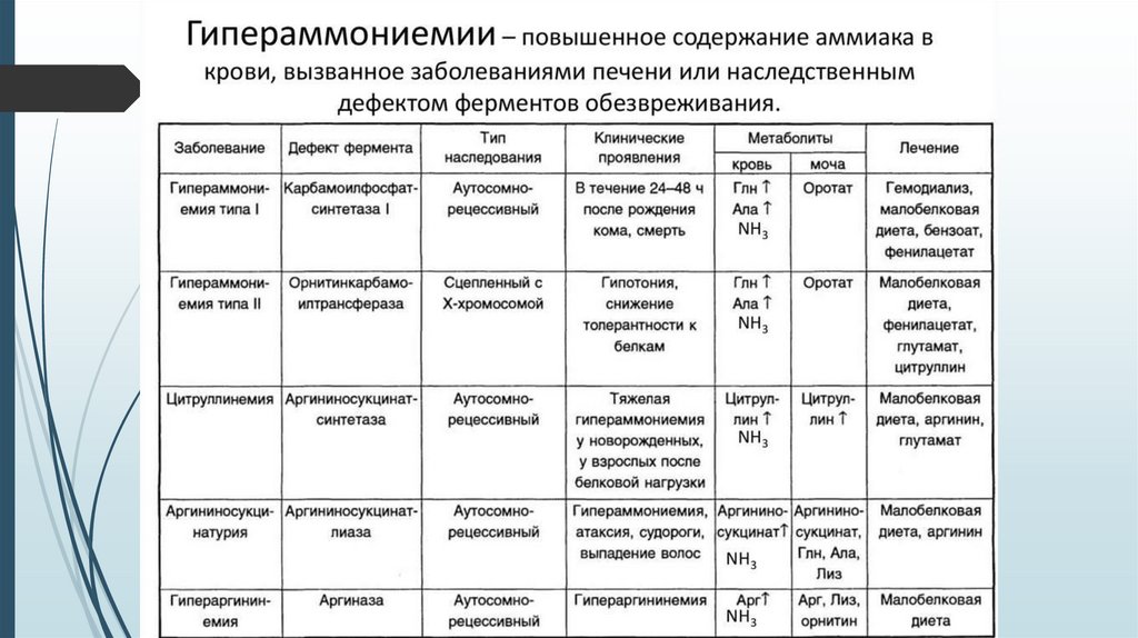 продукция аммиака, концентрация ферментов орнитинового цикла