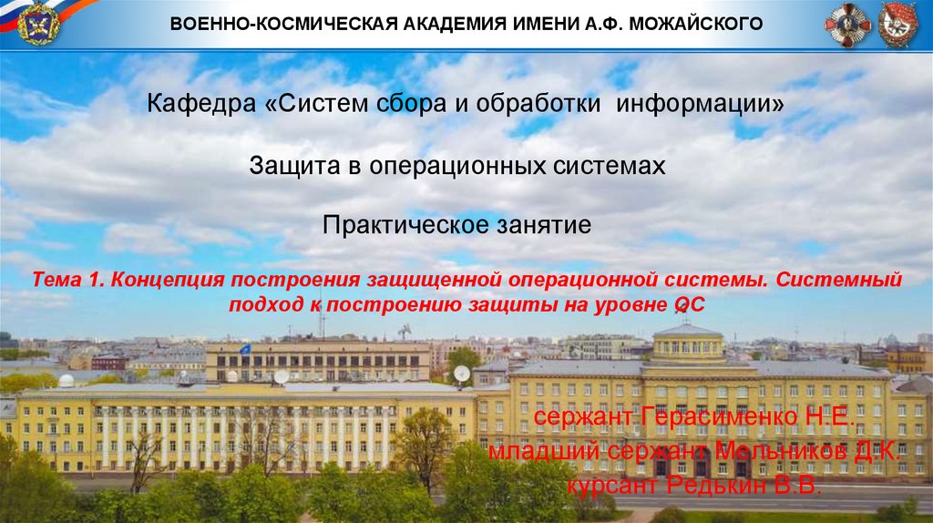 ВОЕННО-КОСМИЧЕСКАЯ АКАДЕМИЯ ИМЕНИ А.Ф. МОЖАЙСКОГОКафедра «Систем сбора и обработки информации»