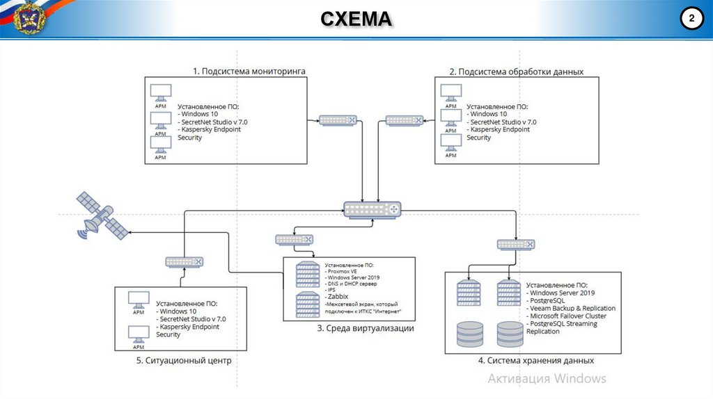 Ситуационный центр - также АРМы, там сидит командование, имеет доступ к СХД, чтобы анализировать результаты работы первых