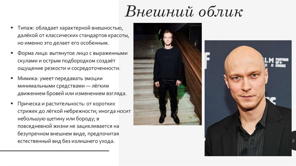 Внешний обликТипаж: обладает характерной внешностью,