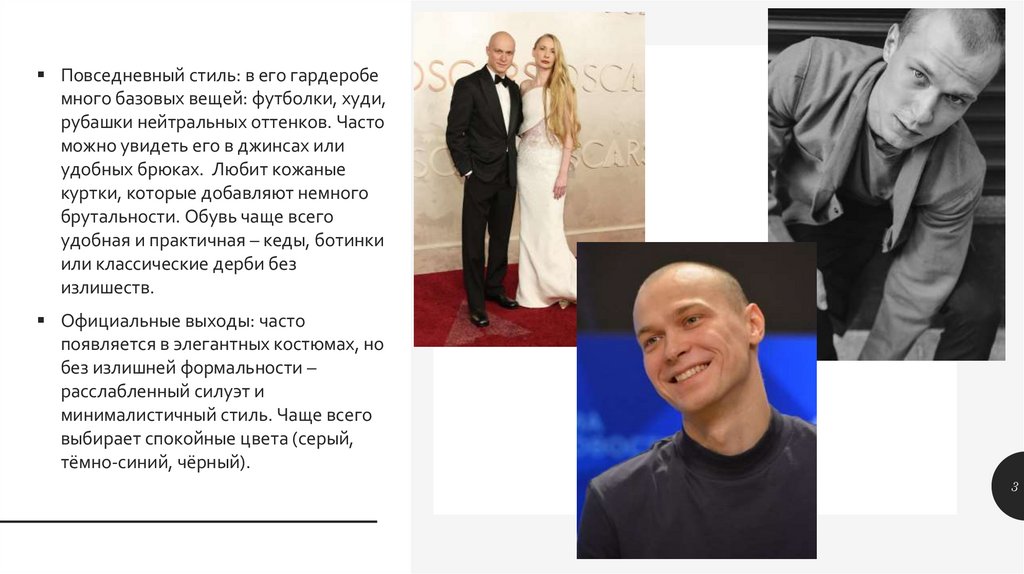 стрижек до лёгкой небрежности; иногда носит