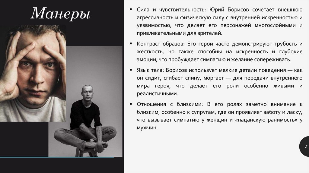 Манеры Борисова создают имидж актера, который