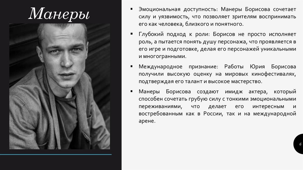 МанерыЭмоциональная доступность: Манеры Борисова сочетает