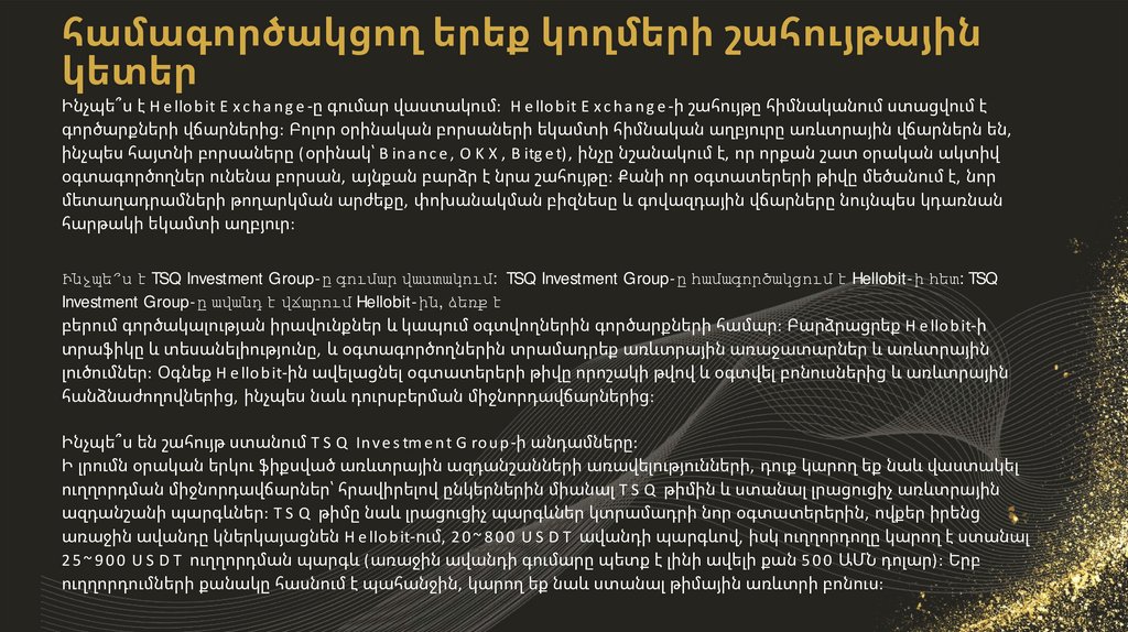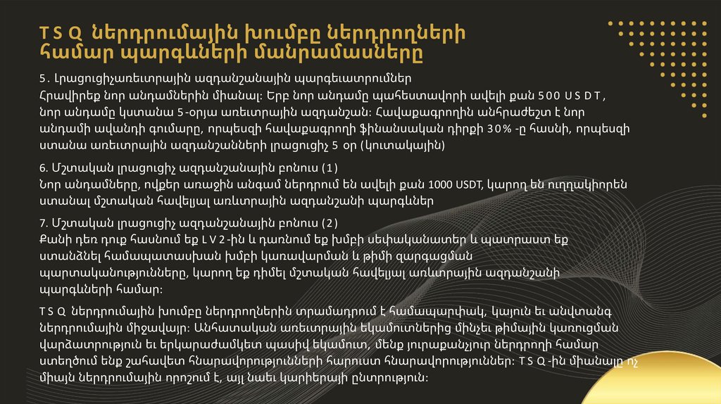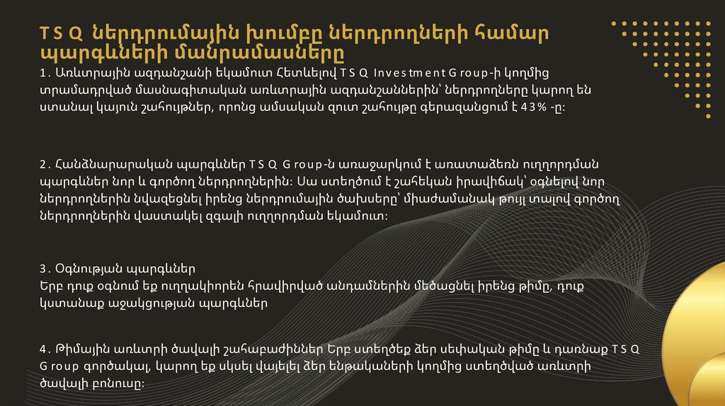Ինչպե՞ս են շահույթ ստանում T S Q In v e s tm e n t G ro u p -ի անդամները: