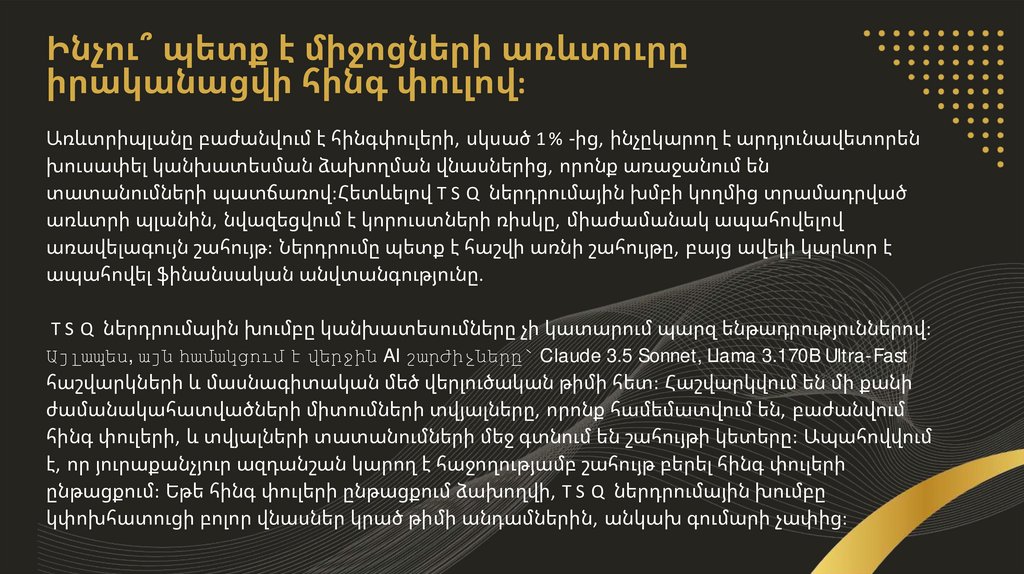 T S Q ներդրումային խումբը կանխատեսումները չի կատարում պարզ ենթադրություններով: