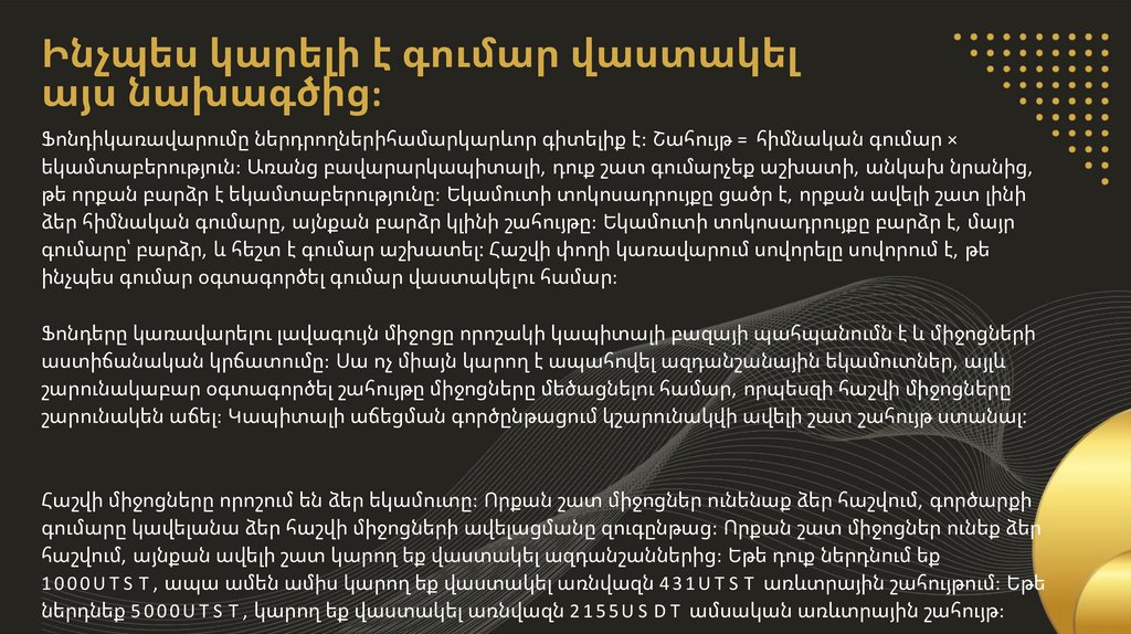 Ֆոնդիկառավարումը ներդրողներիհամարկարևոր գիտելիք է: Շահույթ = հիմնական գումար ×