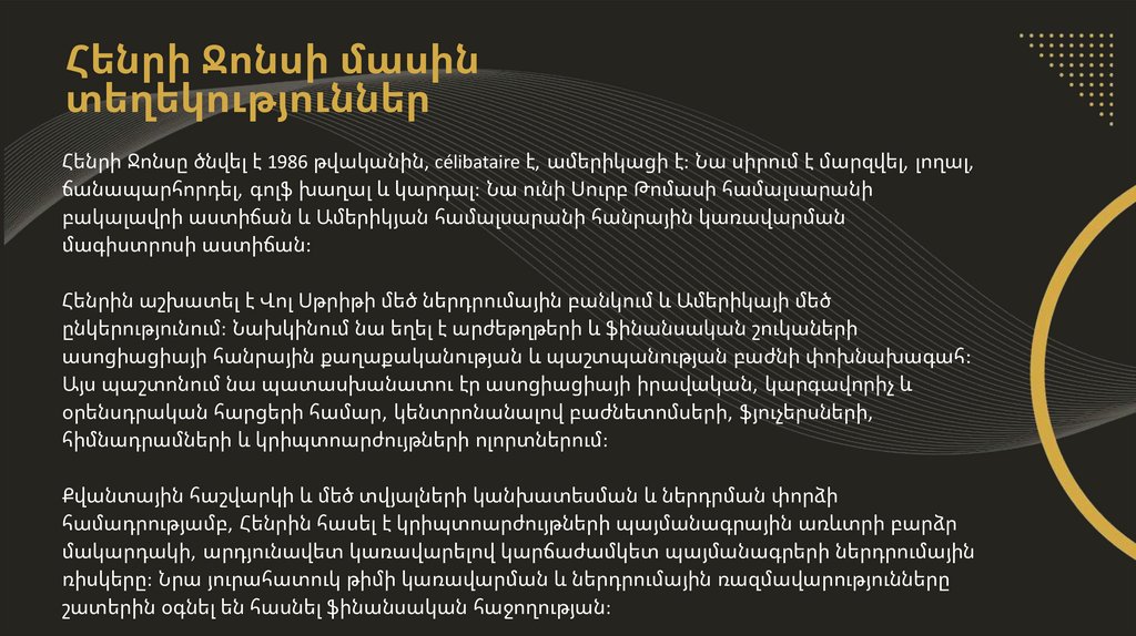 հիմնադրամների և կրիպտոարժույթների ոլորտներում: