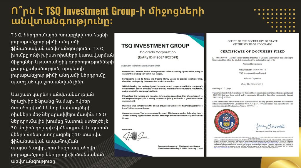 TSQ ներդրումային խումբը ներկայացնում էT S Q (Ժամանակային տարածական քվանտ) ներդրումային խումբը հիմնադրվել է Հենրի Ջոնսի կողմից