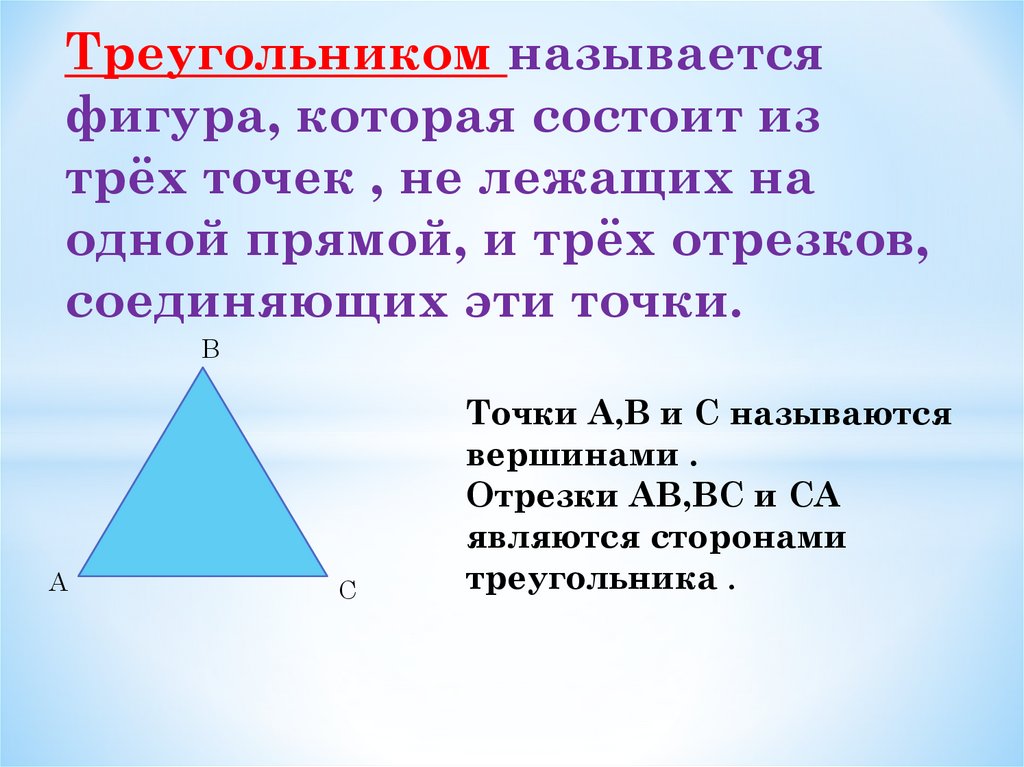 Треугольником называетсяфигура, которая состоит из
