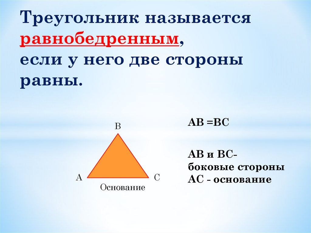Треугольник называетсяравнобедренным,