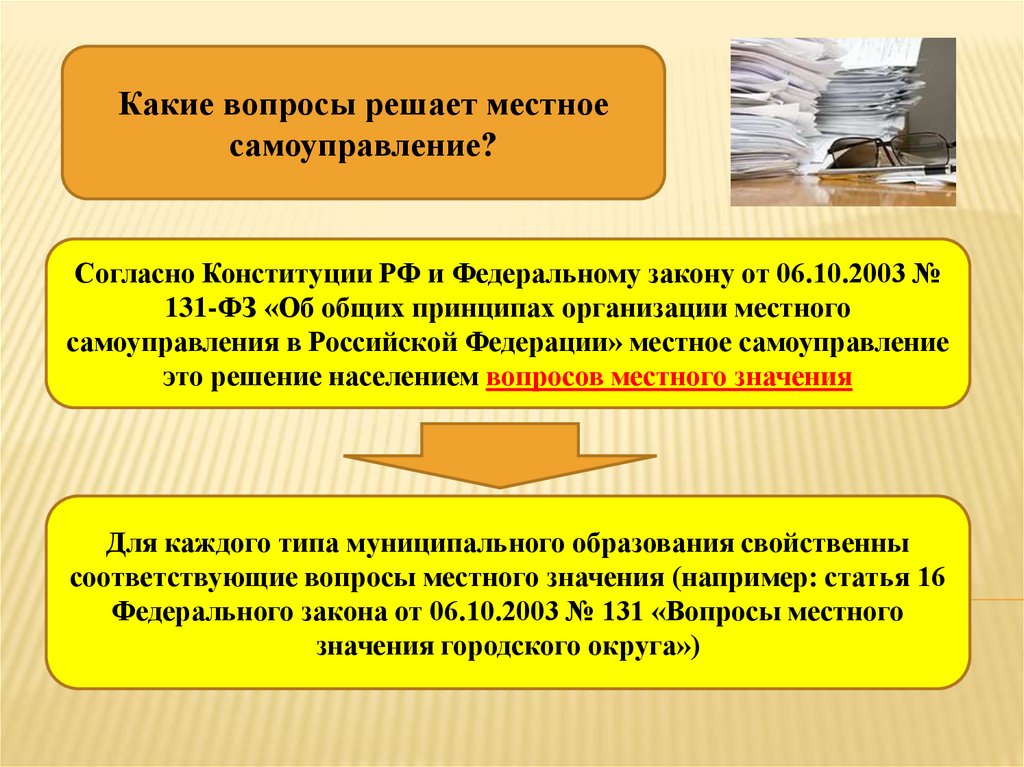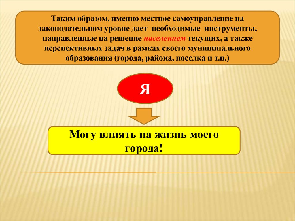 Таким образом, именно местное самоуправление назаконодательном уровне дает необходимые инструменты,